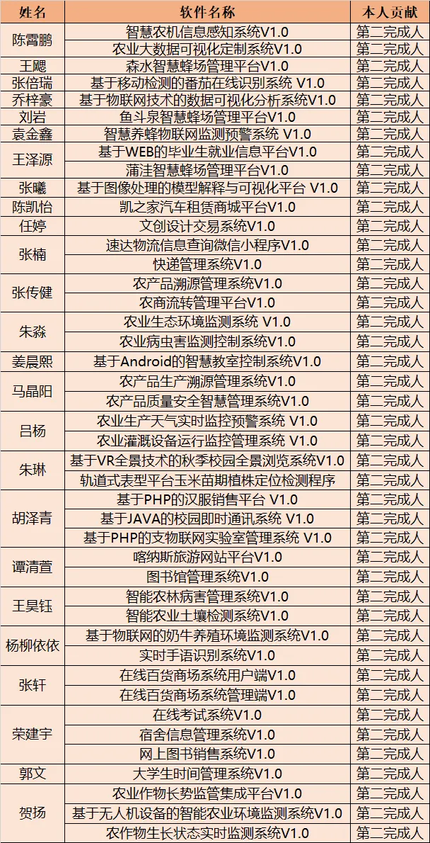 yl7703永利2022级农信1班,共有34人,其中女生16人,男生18人;中共党员9人,共青团员25人。班级成员累计发表论文7篇;获得国家发明专利1项、实用新型专利1项、软件著作权40余项。