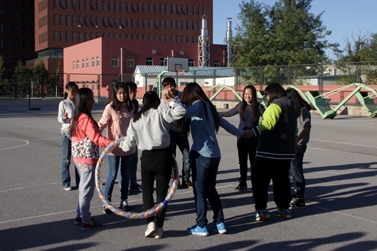活动开始前,同学们早早来到现场并完成了分组,在大家的期待中活动正式开始。篮球场上,活动如火如荼的进行着,成员们的热情驱散了秋日里的丝丝凉意,笑容洋溢在每个人的脸上。“十人九足”、“传呼啦圈”等活动中同学们团结协作,互帮互助,力求将每个项目做到圆满。素拓的最后一个项目是“击鼓传球”,全体成员的共同参与让活动现场热度达到最高峰,大家在各种项目中体验着团结一致的力量,体验着共同协作的成就感。