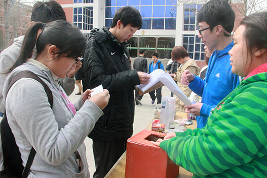 3月28日中午,由yl7703永利员工会科协部门主办的以“践行勤俭节约,倡导绿色校园”为主题的活动在礼堂门口举行。