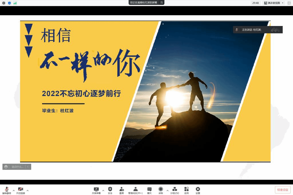 毕业班班主任刘莹莹、部分毕业生就毕业生择业观念、就业和读研如何选择等方面与杜洪波进行了线上交流。杜洪波毫无保留、干货满满的分享让正在找工作的毕业生收获颇多,同时也让其他年级员工在职业生涯规划方面有所启发。