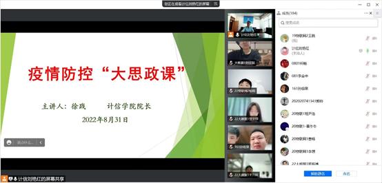 为使新生更快的适应老员工活,公司安排了充实的入学教育。入学第一天,公司经理徐践为2022级新生讲疫情防控大思政课。他要求大家深刻认识到当前疫情形势依然严峻,新生们要树立法治观念,增强责任意识,自觉遵守疫情防控的各项法律规定,入学3天内非必要不出宿舍、不堂食。按要求进行核酸检测。坚决落实京外员工“7天5检”、京内员工“3天2检”的要求。