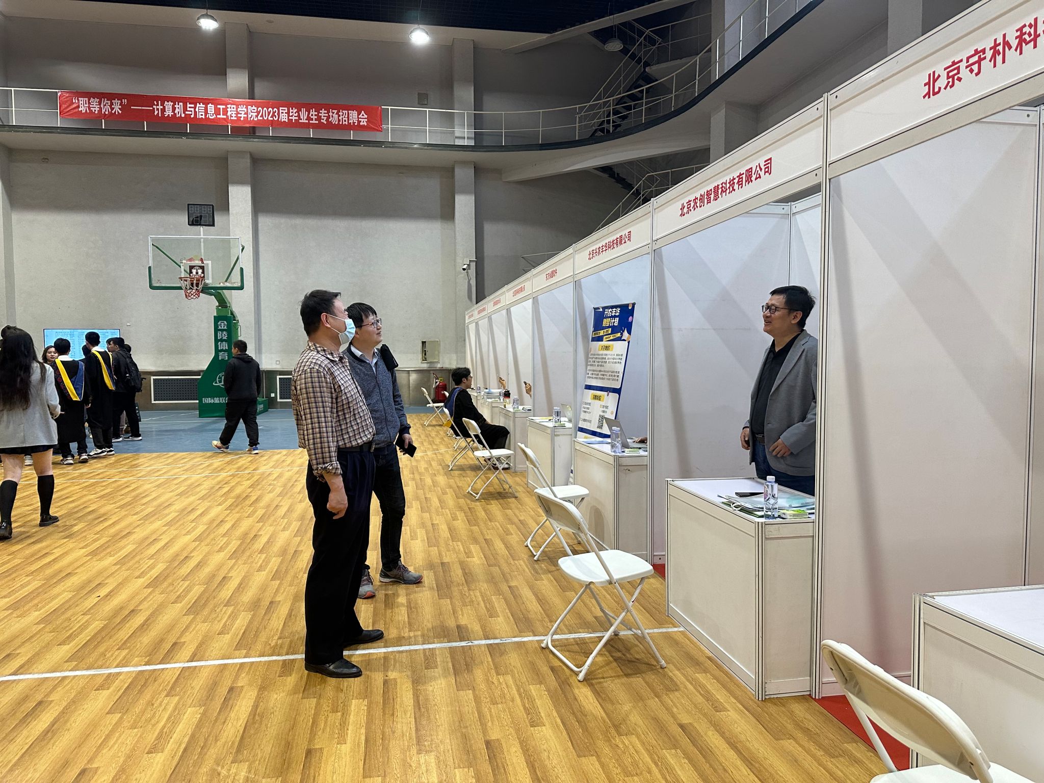 2023年5月20日下午,公司在公司篮球馆举办“职等你来”2023届毕业生专场招聘会。邀请中国电子信息产业集团有限公司第六研究所、北京宣羽科技有限公司、北京晓珑科技有限公司等23家企业来校招才纳贤,一百余名毕业生参加招聘会。公司党总支书记韩宝平,党总支副书记、副经理刘京威,系主任,毕业班班主任、辅导员等在现场与用人单位进行沟通,推荐优秀毕业生,与毕业生进行交流,开展简历、面试指导等就业服务。