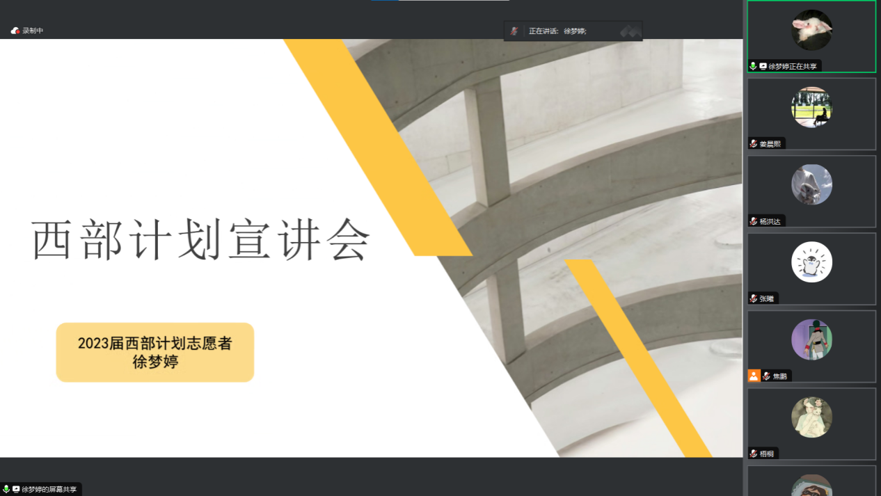 以志愿之名,赴基层之约。此次宣讲会不仅使同学们对西部计划的内容和政策有了更为全面的了解,也起到了巨大的宣传鼓舞作用,相信会有更多同学加入西部计划,将个人理想信念融入民族复兴伟业,在志愿奉献中,展现青年本色。