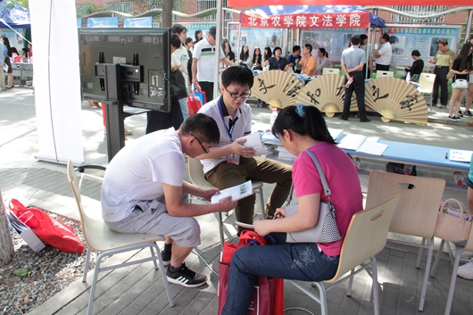 开放日早晨8点,各个公司精心制作的介绍招生专业和办学成果的展板就在公司主干道两侧摆开了。人才招聘处、员工工作处及各公司设立咨询点为考生和家长做详细的介绍,团委设立志愿者服务站为大家提供周到的服务。