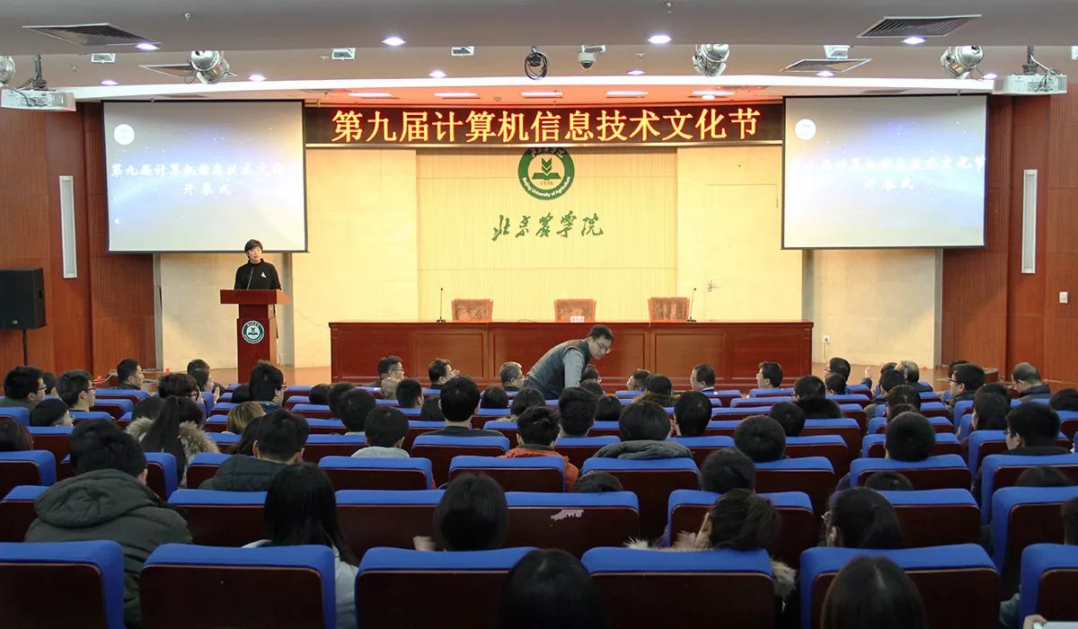 2017年12月22日中午12:30,第九届计算机信息技术文化节在图书馆报告厅隆重开幕。公司党委副书记石勇老师,党委宣传部部长刘铁军老师,员工处处长刘柳老师,科技处处长秦岭老师,研究生处处长何忠伟老师,教务处副处长李相阳老师,团委书记陈勇老师,经管公司副书记张晓凤老师,园林公司副书记李国政老师,以及公司师生代表参加了此次活动。