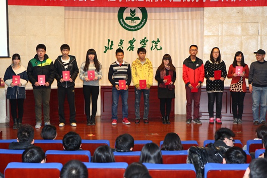 2014年,公司多名员工在各种市级、校级比赛中取得成绩、获得荣誉,他们是公司的骄傲,是同学们心中的榜样。公司领导为获奖的优秀员工颁发证书。