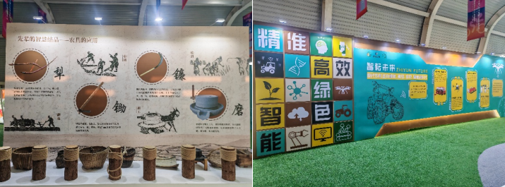 整个参观过程,不仅是课堂理论知识的生动延伸,更是一次现代农业科技全景的直观展示。从传统农具的智慧积淀(如展板中提及的耒耜、镰、磨等)到如今迈向“精准、高效、绿色、智能”的现代农机与管理系统,员工们清晰地感受到了农业技术发展的脉络与飞跃。