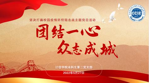 本科生第二党支部的全体党员将继续勠力同心、并肩作战,坚定不移坚持“动态清零”总方针,全力以赴投入战疫情、助攻坚、保安全、护稳定、防风险等各项工作,以昂扬的精神状态和过硬的学习工作作风为打赢北京乃至全国疫情保卫战做出更大贡献。